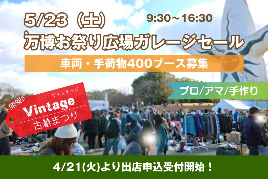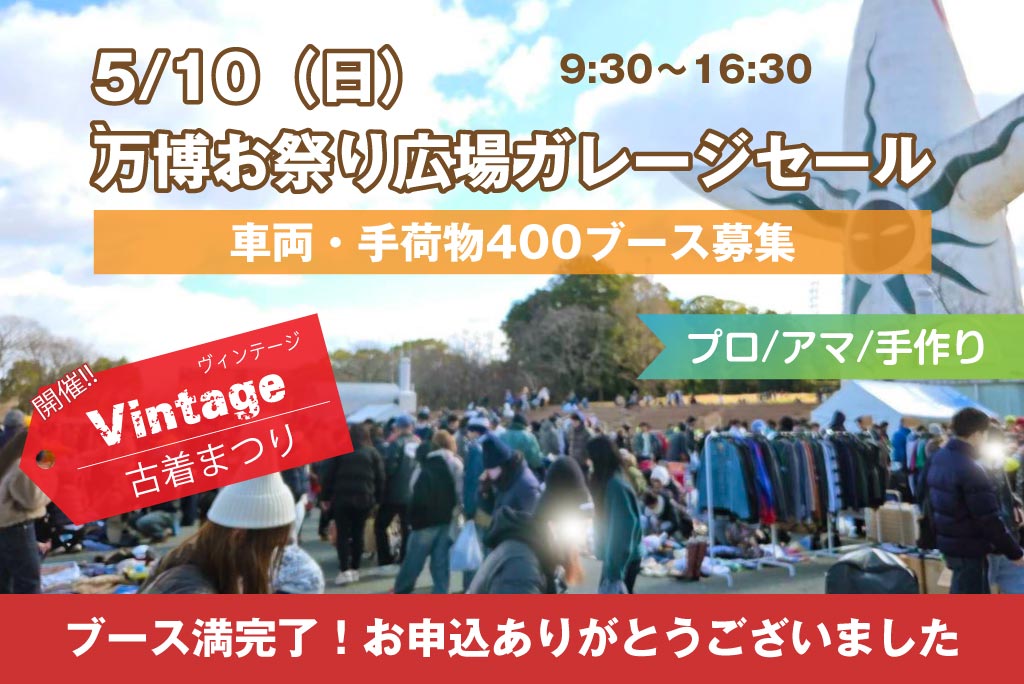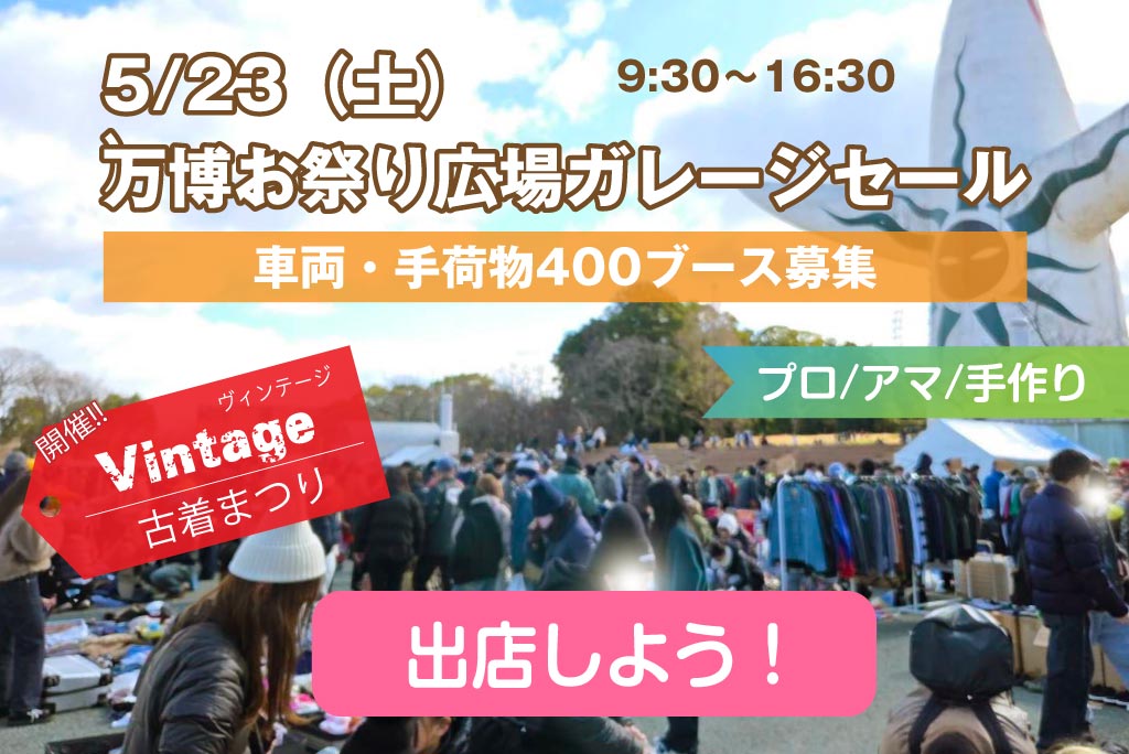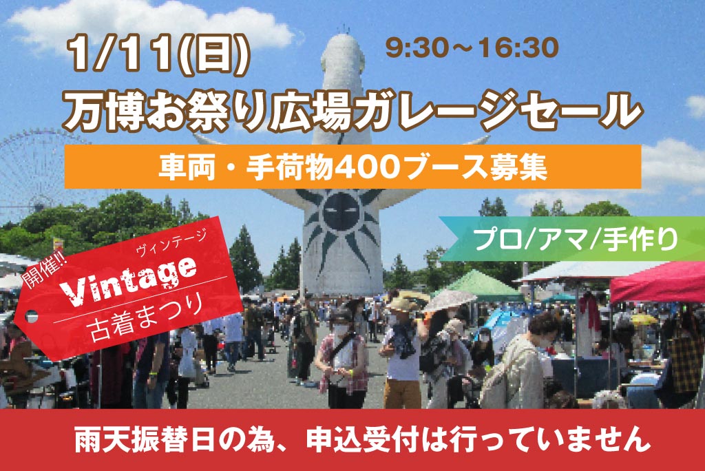 万博記念公園<お祭り広場>で開催。大阪を代表するガレージセール。車両、手荷物400ブース。プロ、アマチュア、手作り出店可!