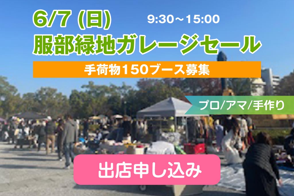 服部緑地公園<東中央広場>で開催。手荷物150ブース。プロ、アマチュア、手作り出店可!