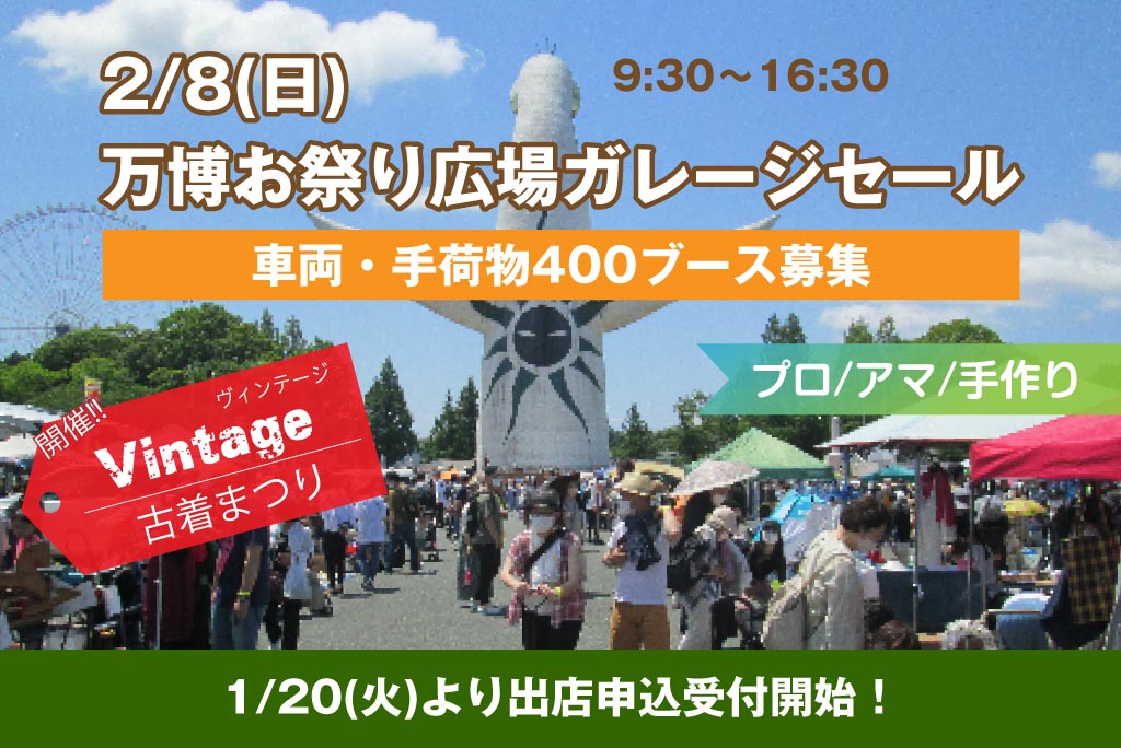 万博記念公園<お祭り広場>で開催。大阪を代表するガレージセール。車両、手荷物400ブース。プロ、アマチュア、手作り出店可!